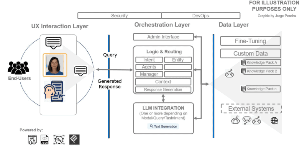 - UX Interaction Layer: Where users engage with the chatbot (and potentially expensive Avatars).